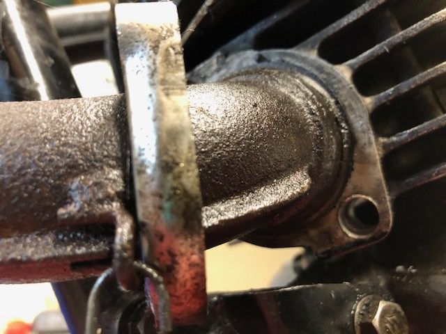 Arrivée pour révision ! Vu l'état du cylindre et la fixation échappement Diamètre 11 lisse au lieu de 6 mm , les réparations précédentes ont laissées des traces.