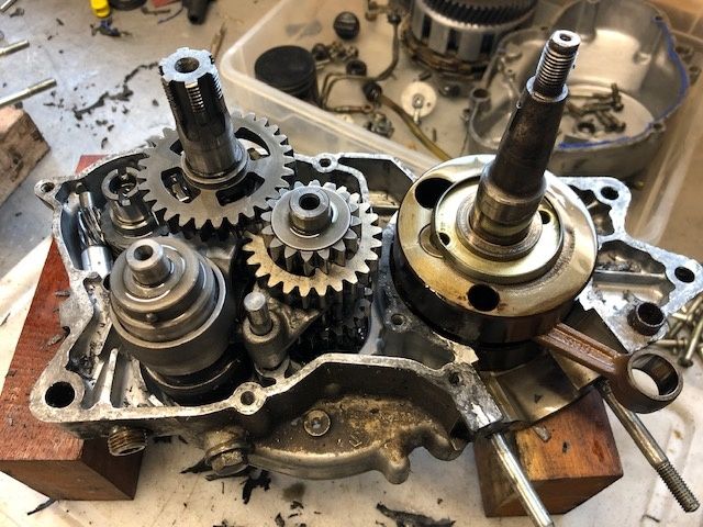 Démontage moteur, ouverture moteur en coupant l'arbre de kick qui était réparé ! et soudé.